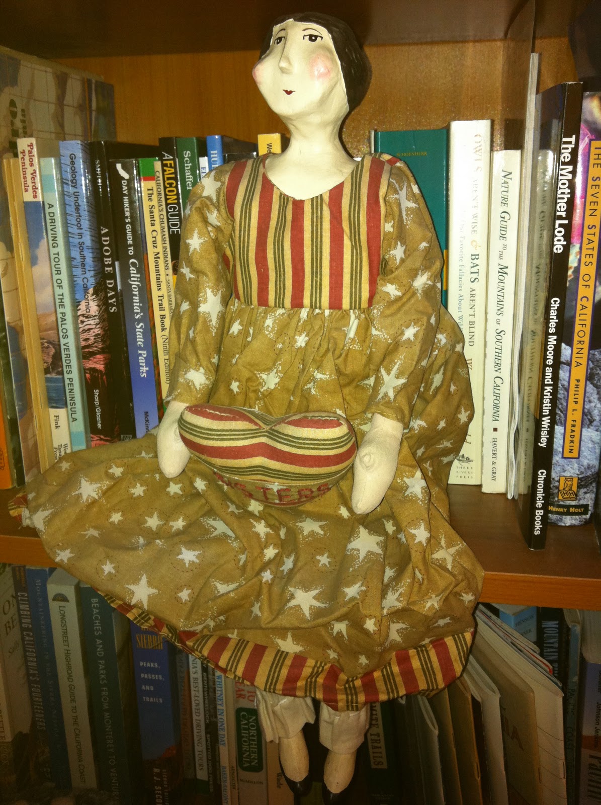 As you know I love collecting matryoshka or babushka nesting dolls. Here's the latest addition to my collection- a giant babushka wooden doll! It is so big it occupies a table all by its lonesome. See how the normal nesting doll sizes up to this beauty.